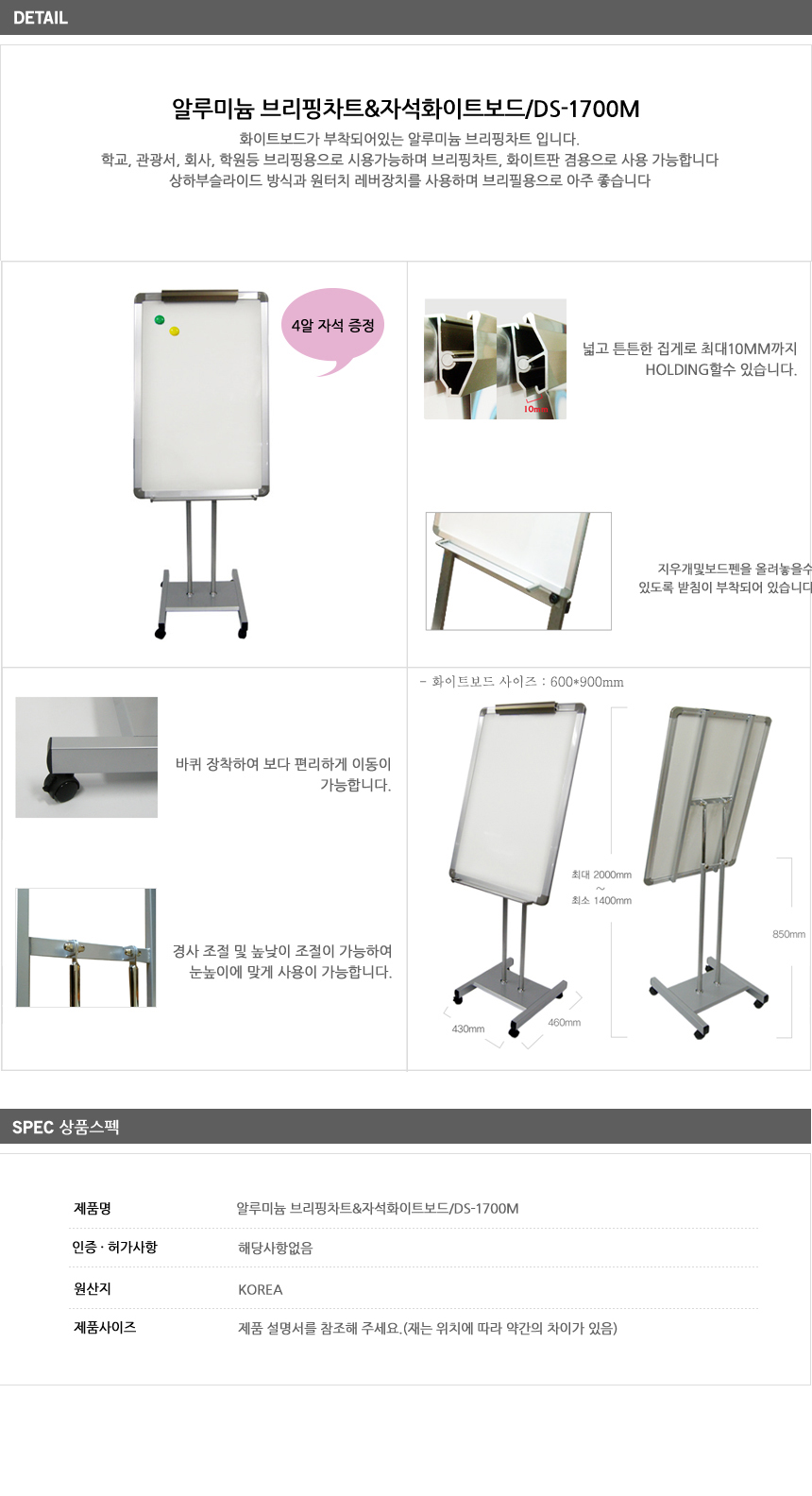 브리핑차트&자석화이트보드DS-1700M(궤도걸이) 상품 설명