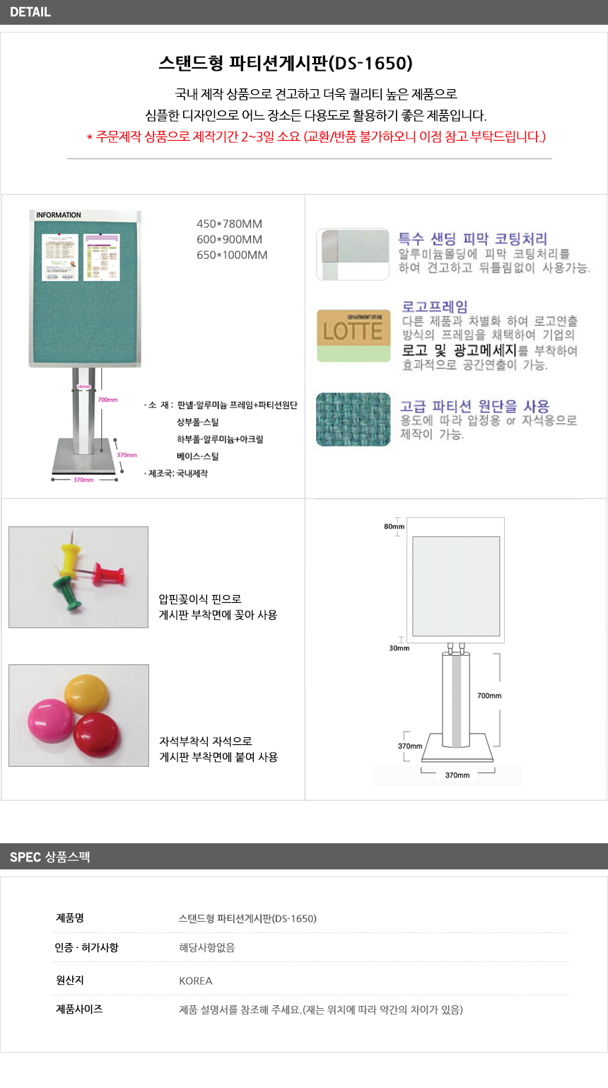 스탠드형 파티션게시판 DS-1650 상품 설명