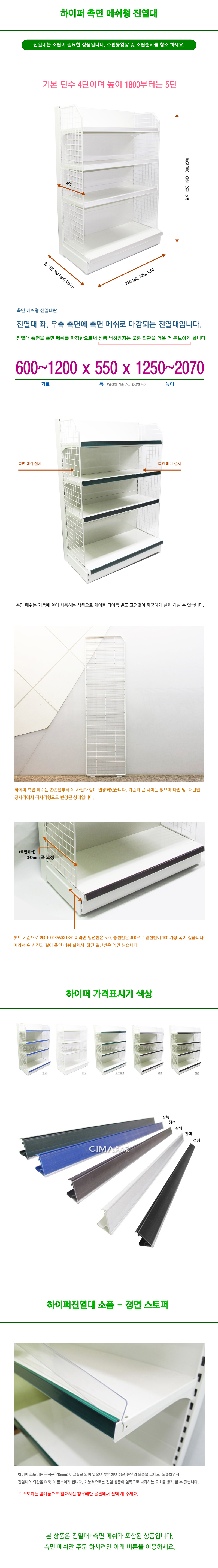 1. 진열대 좌우측 메쉬가 설치되어 측면 상품 떨어짐을 방지 할 수 있습니다.